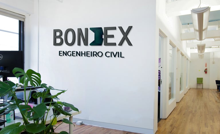 Escolhi usar um imagotipo que representasse uma viga usada em construção no lugar do I no nome Boniex