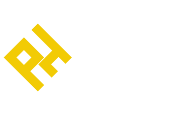 O logotipo usa as letras P e H, que são as iniciais do nome do artista, de forma estilizada e dinâmica, criando um efeito de movimento e ritmo.